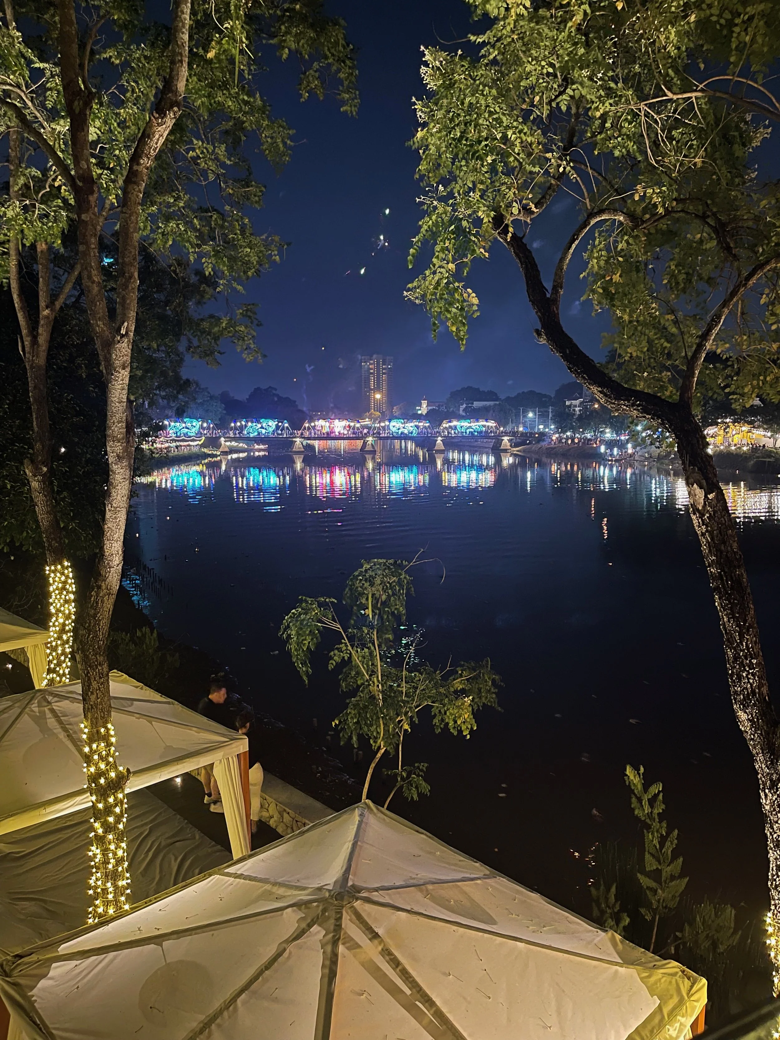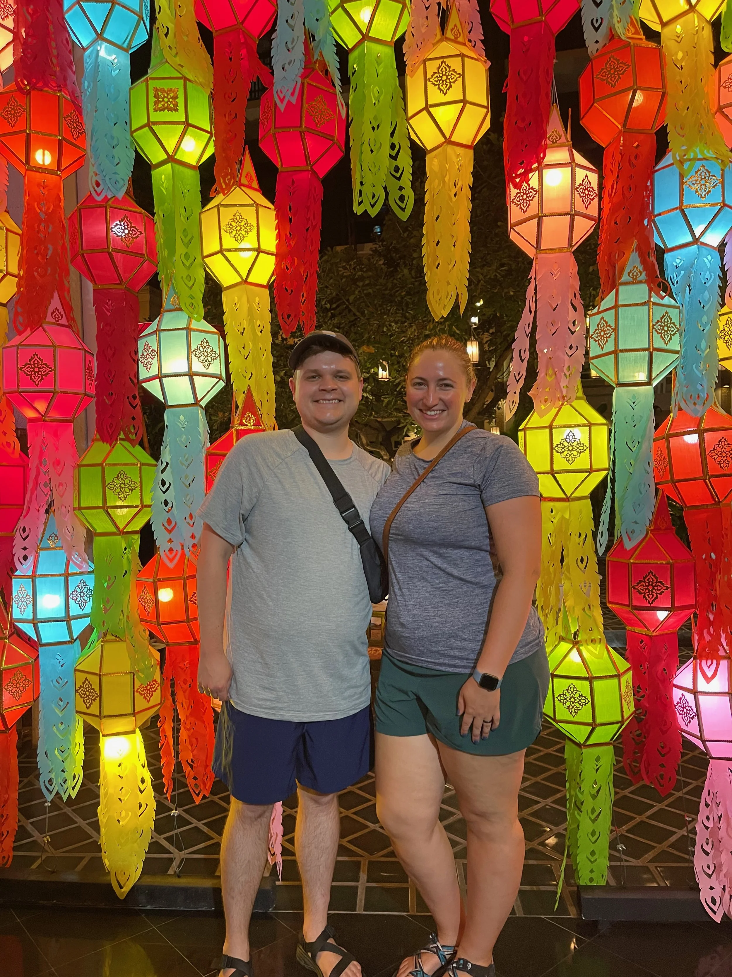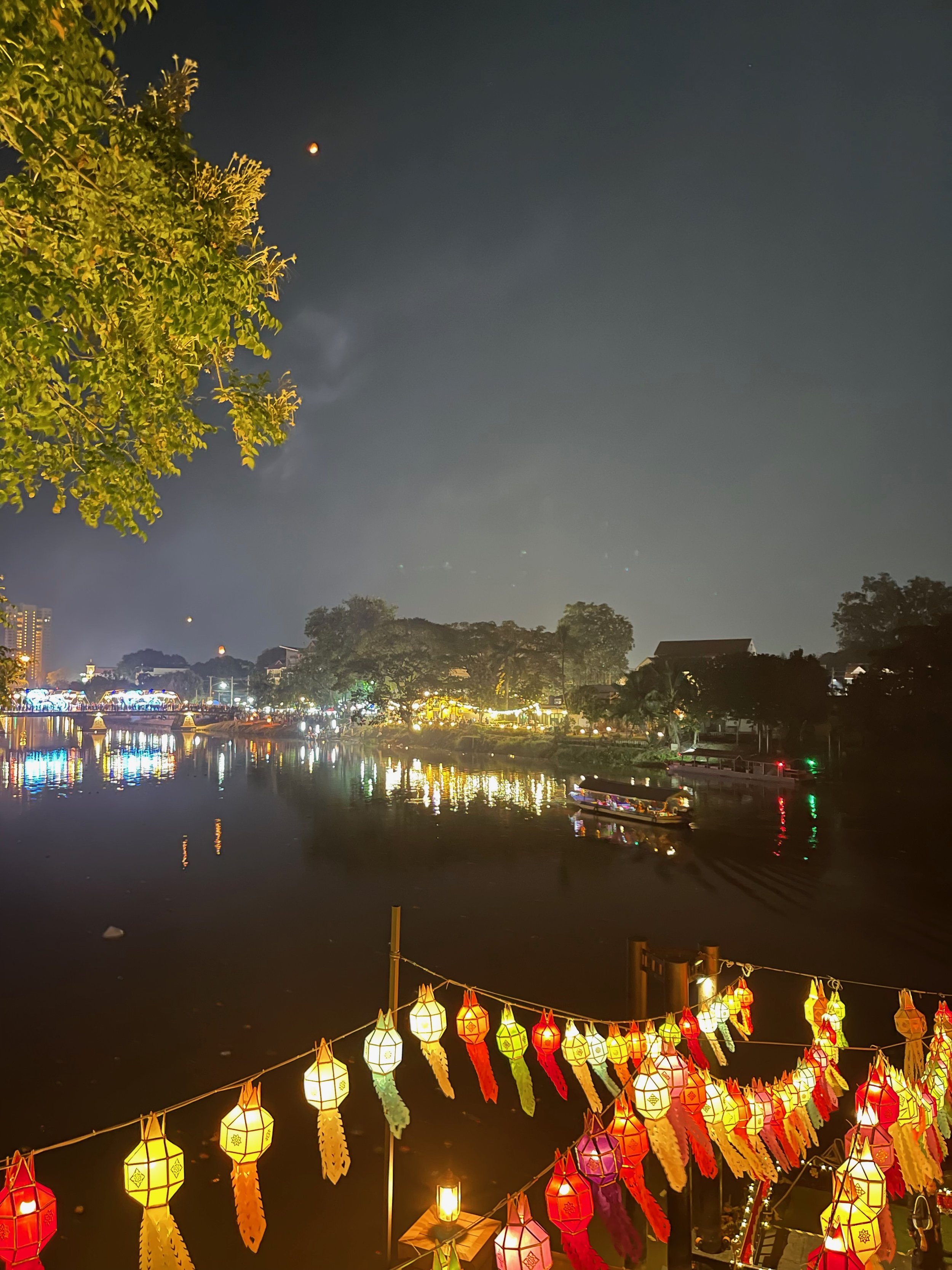 Once we finished dinner, we headed over to their rooftop bar called Bubbles and had another drink while we enjoyed some more floating lanterns (although not nearly as many as the night before) in the sky above. We would later learn that on the previous night, a building in Chiang Mai caught fire. So we were unsurprised that it seemed the police were cracking down.