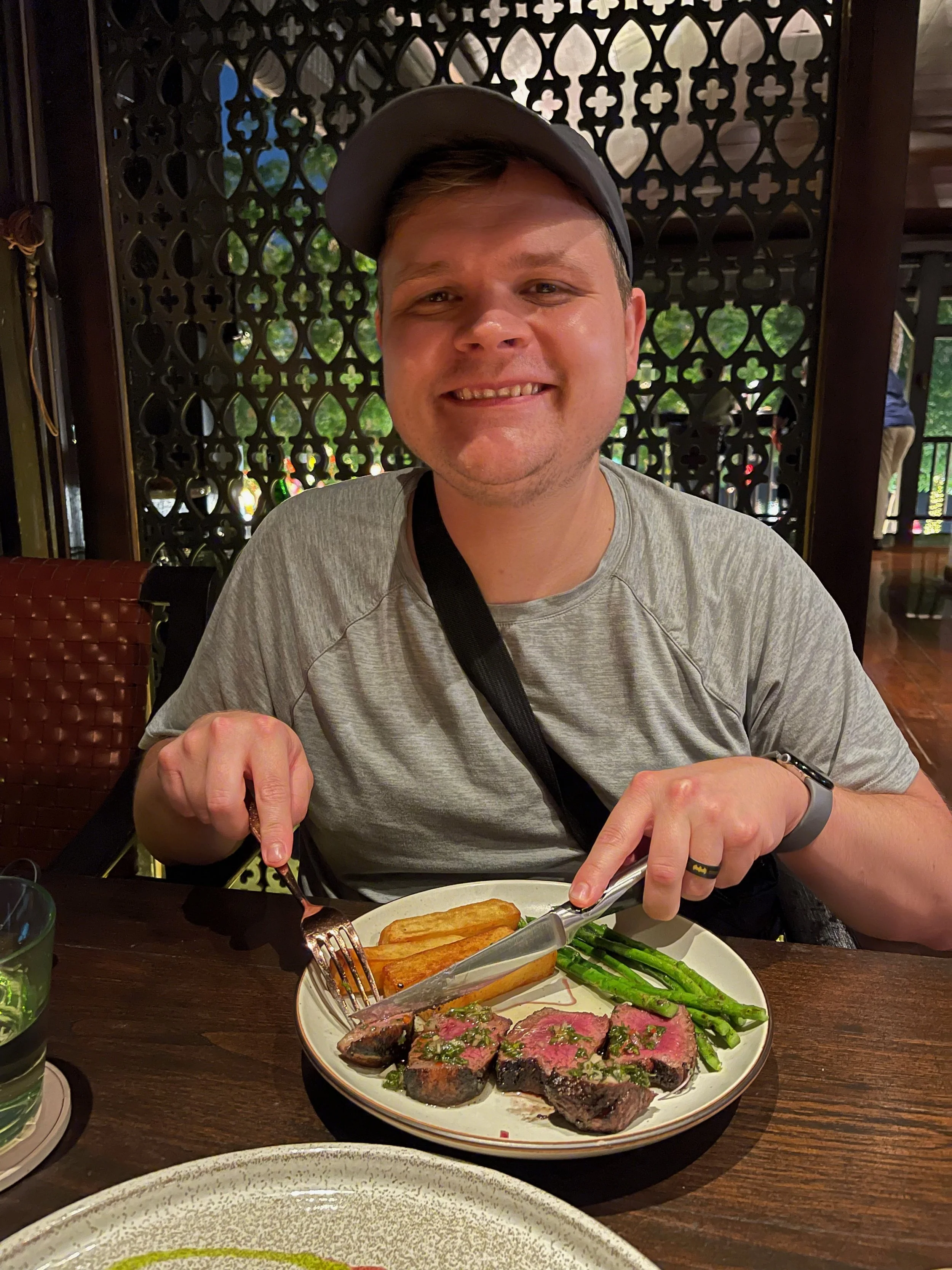 After a quick stop back at the Airbnb, we walked over to a restaurant in a bougie hotel nearby called The Service 1921 (named after the British Secret Service as the hotel was once the location of the British Consulate). We each got some delicious cocktails and shared a scallop appetizer and some delicious steak.