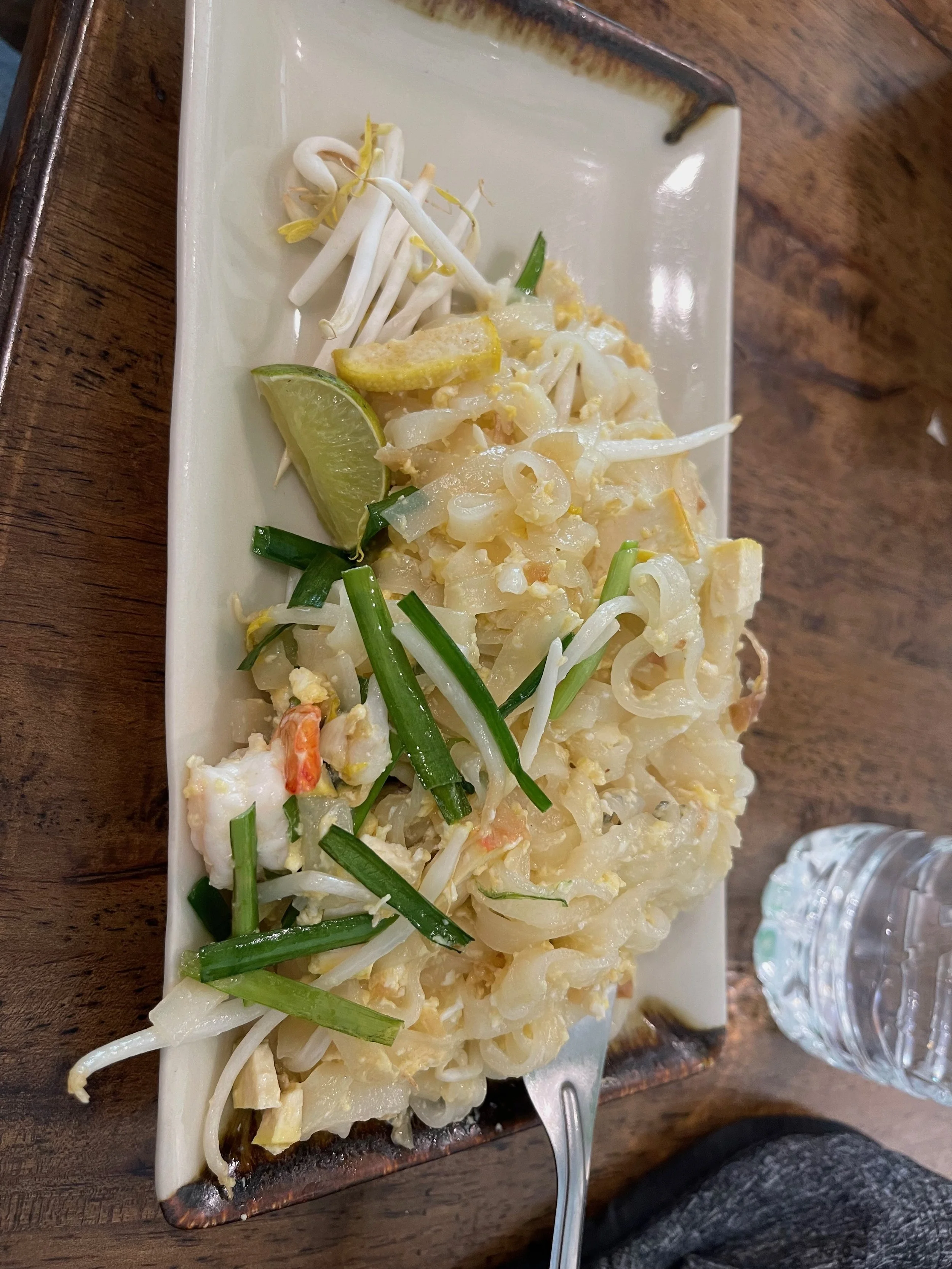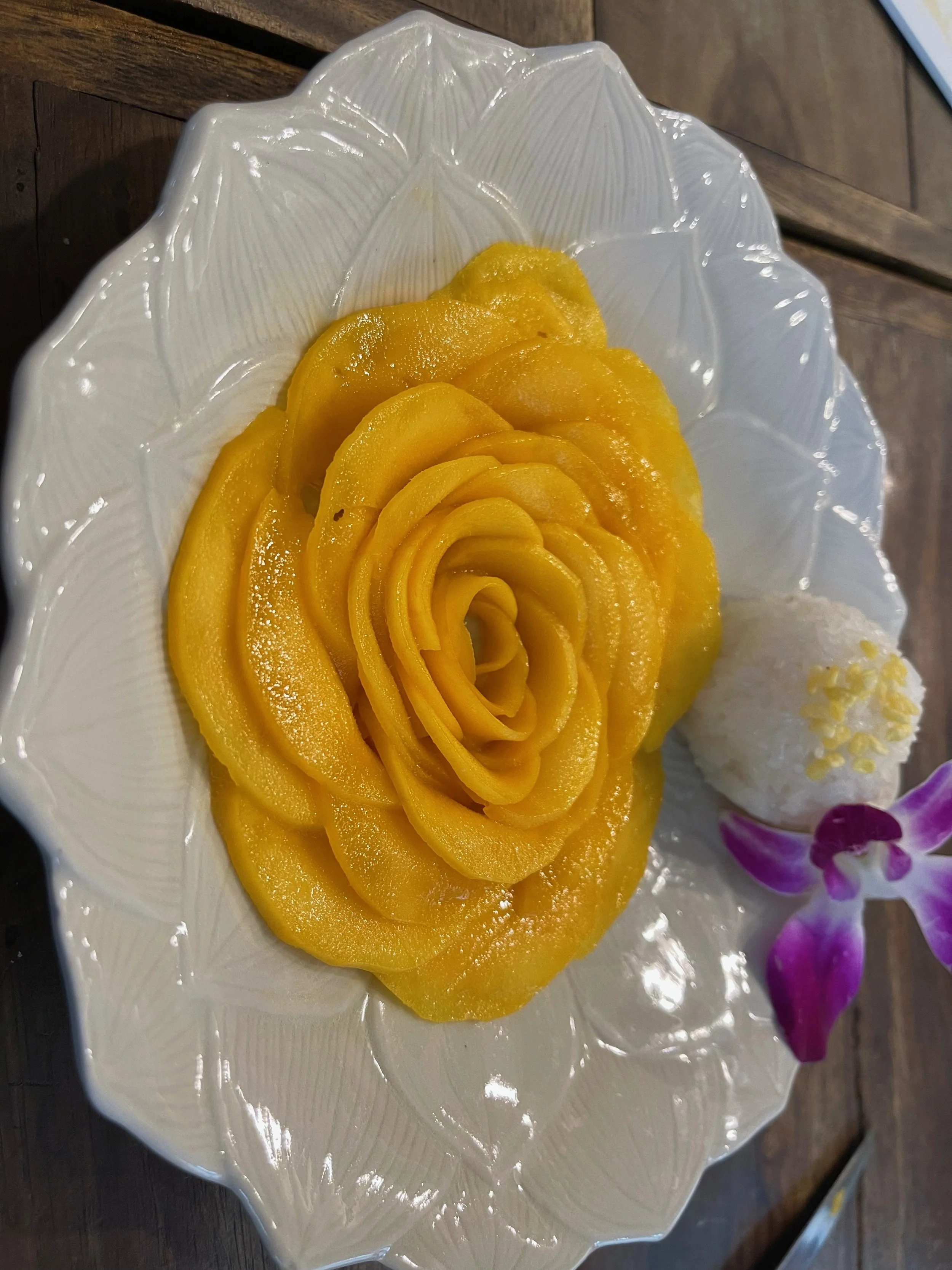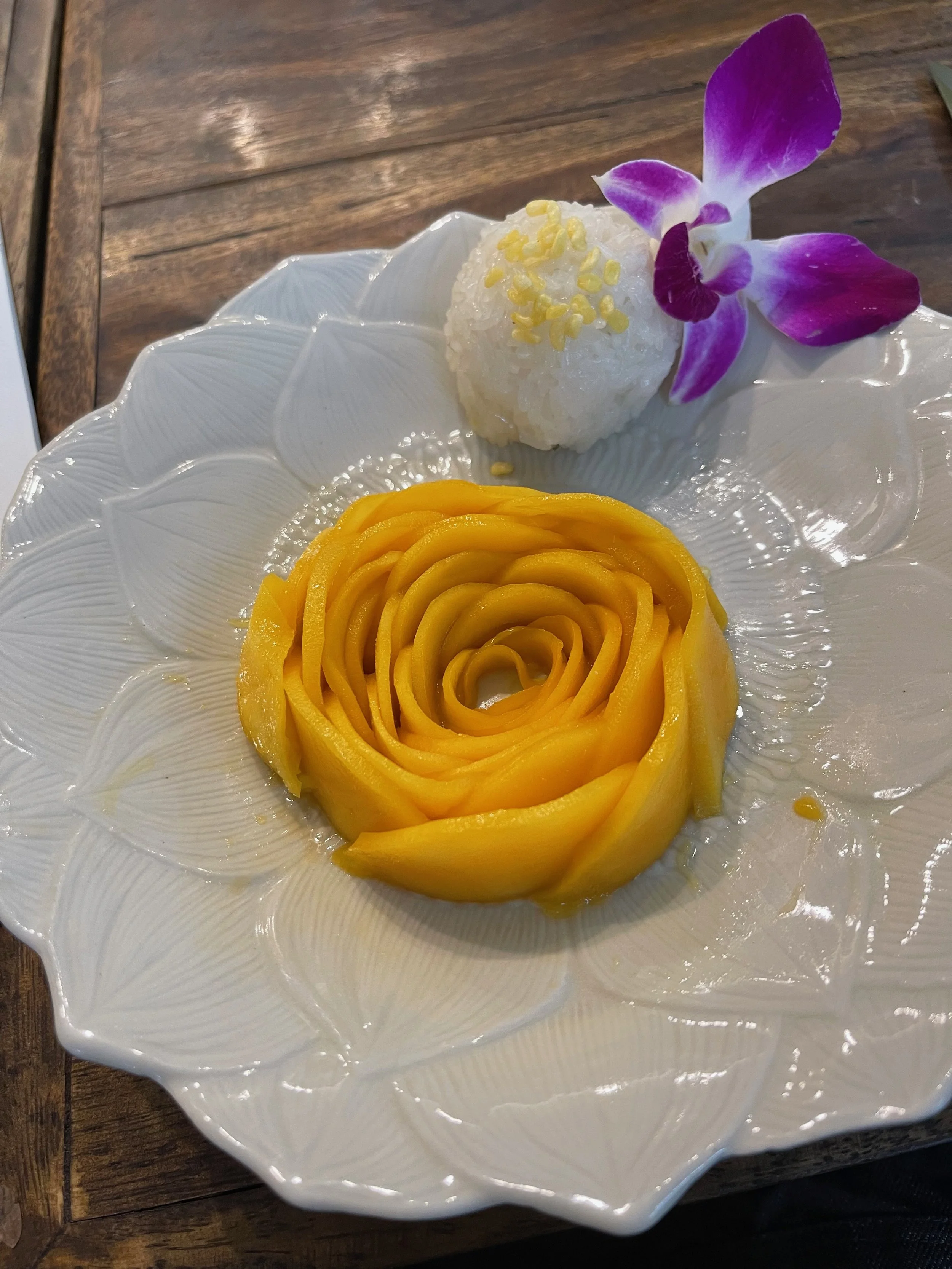 After learning about the ingredients, we would load up our bowls with everything we needed for each dish and then go outside to the stoves to cook them. After we threw everything into the woks, we would plate the dishes, then head back inside to enjoy. What we really liked was that, despite the peanuts we had to omit, everything was gluten and dairy free. We only used rice/rice noodles, coconut milk, fish sauce and tamarind sauce for our meals. Some of the interesting things we learned was that traditional Pad Thai is not meant to be spicy and that although curries in Thailand are inspired by India, many Thai people do not like the taste of Indian curries.