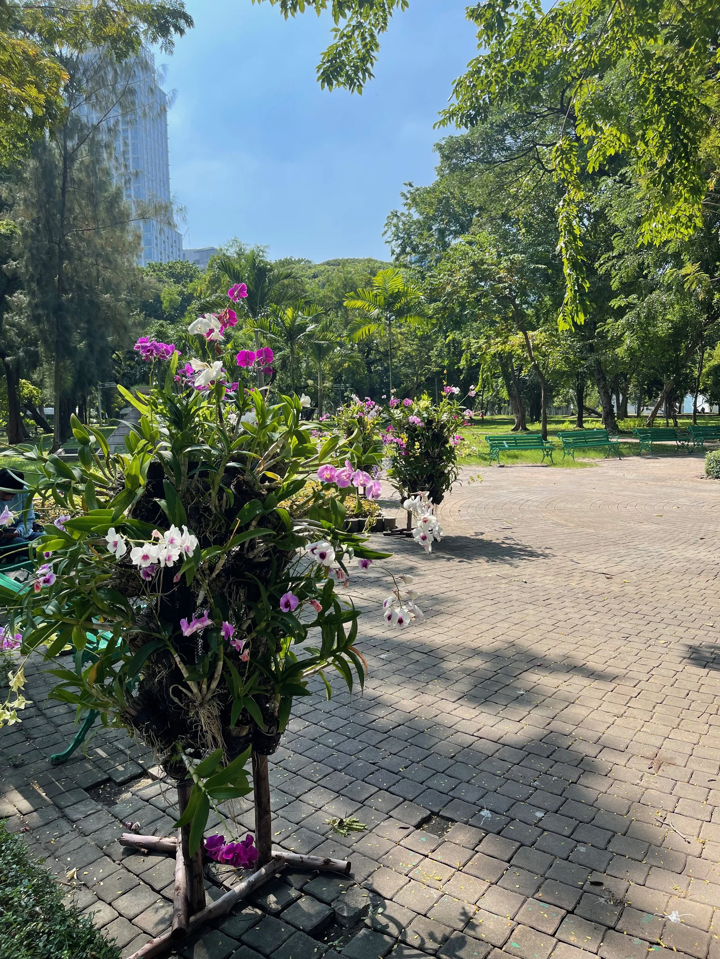 We walked around the park for a little bit, taking pictures and enjoying the greenery, and then decided to go grab a snack before our cooking class. Since Justin hasn’t cooked in a while, we booked a Thai cooking class for the afternoon, but we weren’t exactly sure when we would eat, so we figured we needed a something to tide us over.