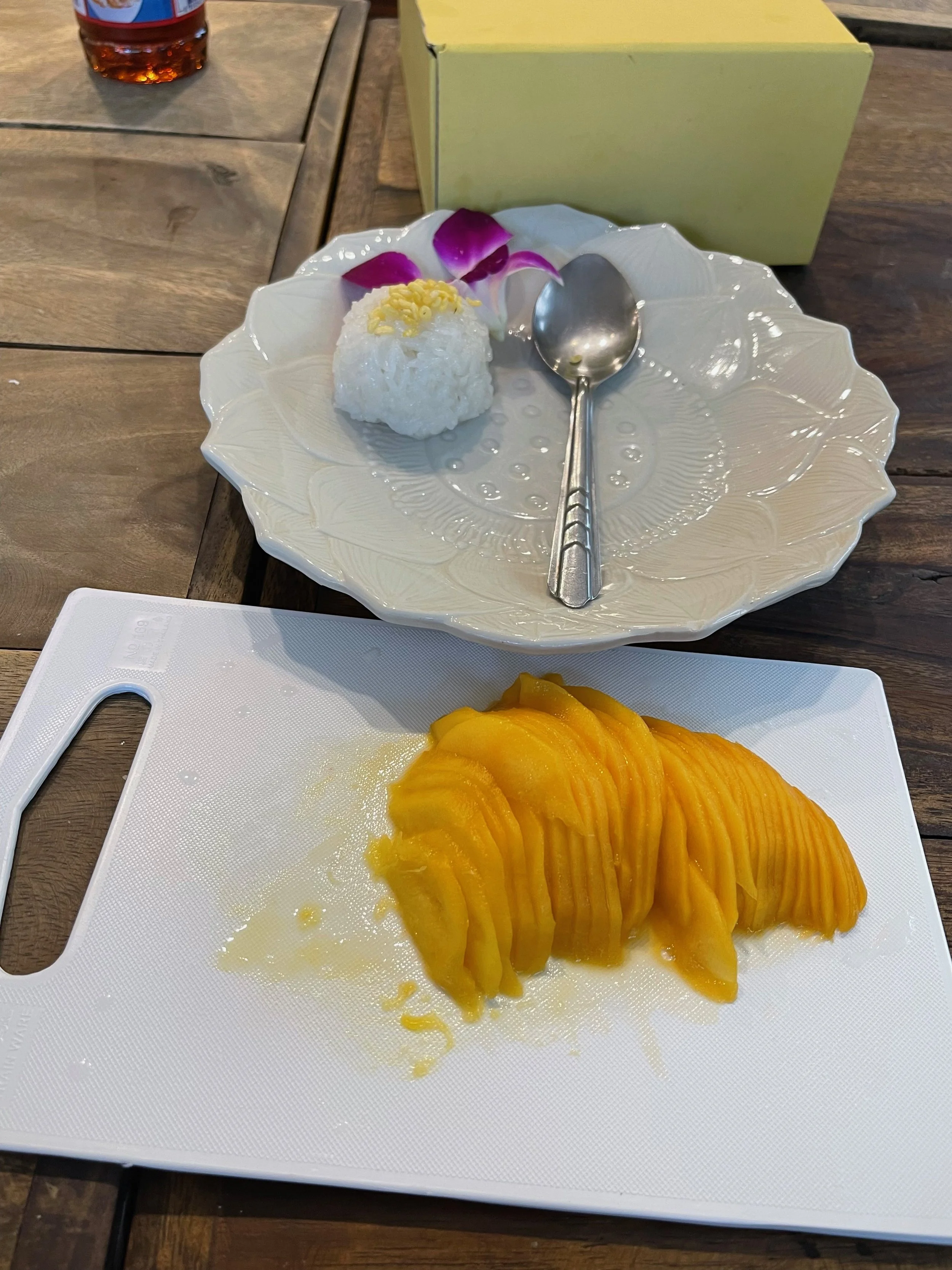 The class was wonderful. In about four hours, we made Tom Ka Ga (chicken and coconut soup), Pad Thai with shrimp, red curry with chicken, and mango sticky rice. With each dish, we would sit around some tables inside with large bowls with all the ingredients in them in front of us. Our instructor would talk about each ingredient and its use in traditional Thai food (like the different ways to use and cook sticky rice, Jasmine rice, and Basmati rice). Interestingly, our instructor was not Thai but from India. She was very entertaining and informative.